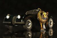 De Jaguar kan in twee vormen komen. In dit memorabele, prachtige stuk zien we een klassiek voorbeeld van het iconische Jaguar-voertuig. Dicht bij de auto, alsof hij recht op je af springt, is de dierlijke jaguar. Beiden zijn in staat om dezelfde gedachten uit te drukken. Beide zijn voorbeelden van kracht, schoonheid en gratie. Dit zijn eigenschappen die, wanneer ze op een bepaalde manier worden uitgedrukt, in staat zijn een kwaliteit aan te nemen die alleen als tijdloos kan worden omschreven. Dit is een krachtig beeld dat er perfect uit kan zien in een breed assortiment aan ruimtes. Beschikbaar als T-shirts, kunst aan de muur of interieurdecoratie producten.