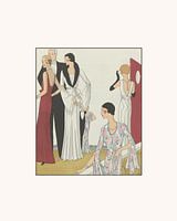Een historische mode prent in een modern jasje. Geïnspireerd door de Art Deco, een stijlbeweging die opkwam in de jaren twintig van de vorige eeuw. Nieuw zakelijkheid gemengd met moderne strakke lijnen en kleuren.