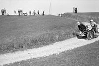 Helmen? Daar hadden ze nog nooit van gehoord. Gewoon scheuren met dat ding. De bakkenist hangt met ware doodsverachting ver in de bocht om de combinatie op het onverharde pad te houden.
