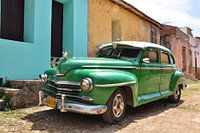 Oude klassieke Plymouth auto in de kleurrijke straten van Cuba