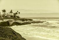 Neerkijkend op Wipeout Beach en de kustlijn in La Jolla, Californië, VS.