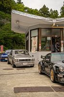 Deze foto is genomen tijdens een toertocht door het adembenemende Hakone (uurtje ten westen van Tokio). De tocht bestond uit voornamelijk Japanse auto's, met de Porsche 964 Turbo als uitzondering. Tegen het einde van de toch moesten alle auto's weer vol getankt worden wat zorgde voor mooie beelden.