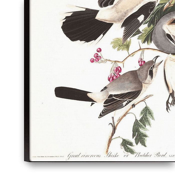 John James Audubon werd geboren op 26 april 1785 in Les Cayes, Santo Domingo, Frankrijk (nu Haïti). Van het landgoed van zijn vader in Pennsylvania maakte Audubon de eerste Amerikaanse experimenten met vogelbanden. Hij begon alle ornithologische dingen te verzamelen en potlood- en pasteltekeningen van vogels te maken. Toen zijn zelfvertrouwen als kunstenaar groeide, waagde hij zich aan aquarellen, het medium dat hij het vaakst zou gebruiken. Audubon werd een reizende kunstenaar, die af en toe leerlingen lesgeeft, maar altijd lokale vogels en hun natuurlijke habitat schildert. Zijn belangrijkste werk, een kleurenplaatboek getiteld The Birds of America (1827-1839), wordt beschouwd als een van de beste ornithologische werken ooit voltooid. Audubon stierf op 27 januari 1851 in New York City. Noot: Dit werk is ook zonder begeleidende tekst in de illustratie te verkrijgen. Neem hiervoor contact met ons op.