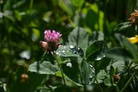De druppels op dit klaverblad zijn net diamanten
