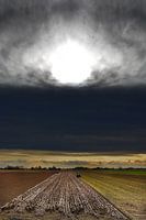 Het omploegen van de kleigrond volgens vaste patronen en lijnen in Het Bildt, de noordwesthoek van Friesland in het najaar na de oogst.
