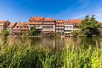 Voormalige vissershuisjes in Klein Venetië in Bamberg aan de Regnitz, Franken, Beieren, Duitsland.