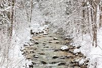 Klein beekje in het sneeuwbos (Berchtesgadener Land, Beieren)