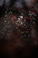 Het is vroeg in het voorjaar en deze Krentenboom begint te bloeien. Het laatste zonlicht schijnt precies op dit ene kleine bloempje.