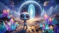 Over ‘Klein buitenaards wezen bewondert kristalhelder maanlandschap’ van artefacti