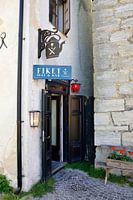 Er zijn talloze leuke restaurants in de stad Visby op Gotland in Zweden. Dit restaurant ligt mooi verscholen in de hoek onder een van de hoofdingangen van de stad.