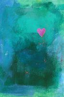 Little Pink Heart is een acrylschilderij in portretformaat geschilderd door de kunstenaar Karen Kaspar. Een klein roze hart zweeft op een abstracte getextureerde achtergrond in verschillende tinten groen, turquoise en blauw. Het gaat op weg om de wereld te verkennen en fortuin te maken. Moge dit kleine symbool van liefde en vriendschap ook geluk en vreugde in je huis brengen!