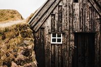 Een typisch IJslands schuurtje, gefotografeerd op een koude winter ochtend. Deze schattige huisjes zijn verborgen tussen de grote grassen plaggen.
