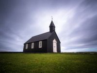 Búðakirkja is een traditioneel klein zwart kerkje op het schiereiland Snæfellsnes, een van de vele prachtige kleine kerken in IJsland. De zwarte kleur komt door het gebruik van pek. Foto genomen met een lange sluitertijd om het effect in de lucht te krijgen.