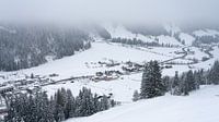 Zicht op het dorp van Kleinarl in Oostenrijk op een winterse dag. Dit werk is gemaakt vanaf een hoger punt in de Alpen