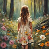 Koop dit schilderij Kleine Meisje In Het Bos Schilderij van ComfortQ als reproductie op canvas, aluminium dibond, (ingelijste) fotoprint, behang en ArtFrame, op maat geprint in Fine-Art kwaliteit.