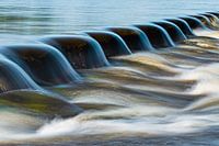 Kleine dam, close-up met prachtige structuur van water in Levi, Finland. Gemaakt met een lange sluitertijd vanaf statief.