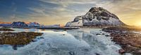 De houten kerk in Gimsoy op de Lofoten in het noorden van Noorwegen