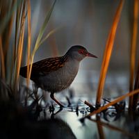 In een mysterieuze wirwar van riet kruipt 's nachts een elegante vogel met glinsterend verenkleed en felrode ogen voorbij. Zijn sierlijke lichaam vormt een fascinerend contrast met de zachte, gouden stengels terwijl hij voorzichtig het ondiepe water oversteekt. De stilte van de omgeving wordt alleen onderbroken door het zachte geklots…