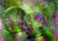 Twee glinsterende knikkers van glas, herinneringen aan de kindertijd met kleine schatten. Stilleven.