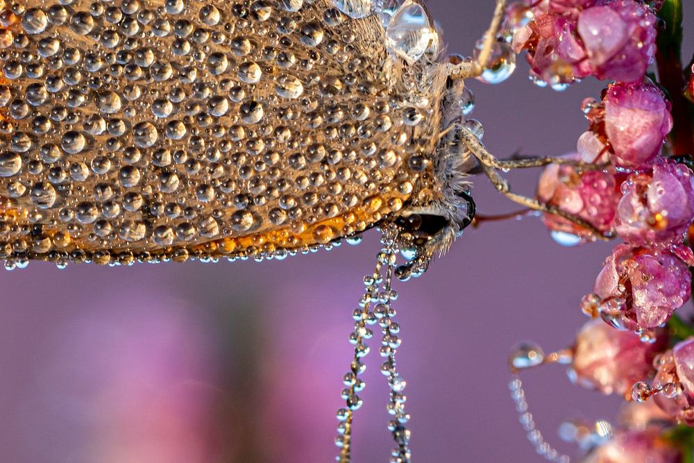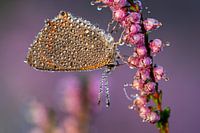 Een kleine vuurvlinder, op een vroege ochtend in september in de Overloonsche Heide. De omstandigheden waren perfect. Geen wind, nevel en een prachtige zonsopkomst.