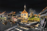 Koop de foto Kleine werf in Hindeloopen in Friesland vlak achter centrale sluis van Harrie Muis op canvas, aluminium dibond, (ingelijste) fotoprint, behang en ArtFrame, op maat geprint in Fine-Art kwaliteit.