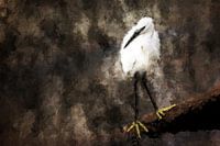 Over ‘Kleine zilverreiger staand op een boomtak (kunst)’ van Art by Jeronimo