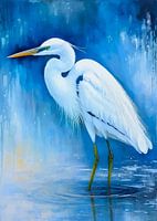 In dit clair-obscur schilderij wordt de kleine zilverreiger getransformeerd in een stralend figuur van gratie. Zijn sneeuwwitte verenkleed schittert tegen lagen van diepe schaduw, benadrukt door schilderachtige texturen die de vloeiende bewegingen van het water weerspiegelen. Spetterende details verspreiden zich over het doek als druppels van zijn wadende stappen en voegen energie en leven toe. Het dramatische contrast straalt puurheid en evenwicht uit en maakt van de zilverreiger een stralend middelpunt. Dit expressieve stuk spreekt klanten aan die waarde hechten aan elegantie, minimalisme en de natuur opnieuw vormgegeven door middel van gedurfde kunstzinnigheid.