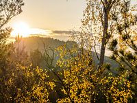 Als in een verborgen voorwerp-foto kan de kijker een van de beroemdste bezienswaardigheden van Saksisch Zwitserland, de Barbarine, op deze foto zoeken. Veel meer aanwezig is echter de Gohrisch, waarachter de zon al snel in de nacht verdwijnt.