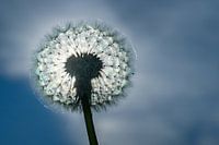 Vruchtpluis van paardenbloem bij tegenlicht; Dandelion blowball in backlight