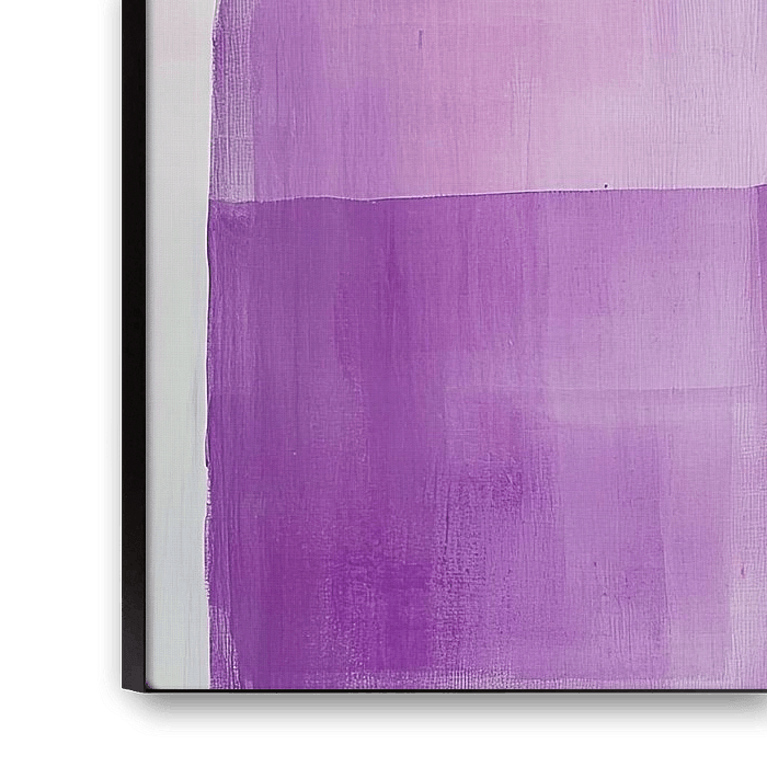 Kleurcontrast | Abstracte Rechthoekige Kleurvlakken - Dit abstracte schilderij kenmerkt zich door grote, rechthoekige vlakken in levendige paarse en oranje kleuren, op een wijze die rust en eenvoud uitstraalt.