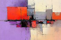 Kleurcontrast | Purperen Rust - Dit abstracte schilderij toont een harmonieuze compositie met dominante purperen en oranje kleurvlakken, doorsneden met dunne, zwarte lijnen die zorgen voor een gevoel van balans en rust.
