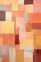 Kleuren Mozaïek - Dit is een abstract werk met een aangename compositie van overlappende, geometrische vormen. De kleurenpalet is warm en uitgebalanceerd, met een focus op aardetinten als terracotta, oker, en zachte pasteltinten van roze en oranje, verlevendigd door subtiele schakeringen van mauve en grijs.
