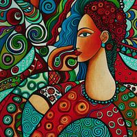 Dit werk in een figuratieve en expressionistische stijl geschilderd in acrylverf heeft als onderwerp felgekleurde portretten. Ik heb bewust de expressionistische meesters goed bestudeerd en geprobeerd de veelzijdigheid van alle kanten van een gezicht op een gestileerde manier weer te geven. Ik probeerde ook de spanning tussen mensen weer te geven, want hoe je het ook bekijkt, er is altijd een soort spanning aanwezig in een relatie; dit in de goede en in de slechte zin van het woord.