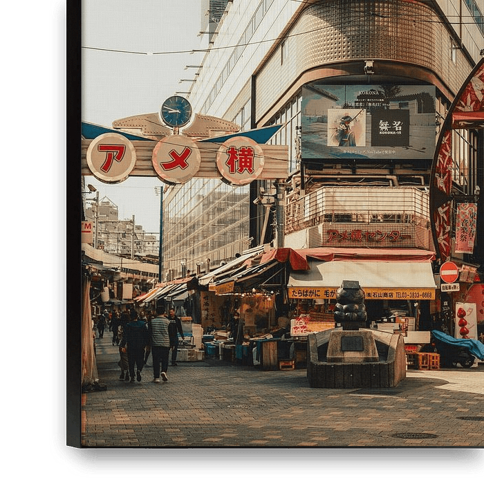 Koop dit landschapskunstwerk Kleuren, tekens, leven: Marktstraat in Ueno, Tokio van NZME Photography op canvas, aluminium dibond, (ingelijste) fotoprint, behang en ArtFrame, op maat geprint in Fine-Art kwaliteit.