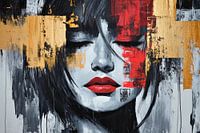 Een fascinerend samenspel van gedurfde kleuren en expressieve vormen ontvouwt zich hier, terwijl een mysterieus gezicht zachtheid en kracht belichaamt. De levendige rode tinten en gouden accenten harmoniëren perfect met de diepe zwart-witte voorstelling. Dit kunstwerk is ideaal voor een slaapkamer en voegt emotionele diepte en een vleugje elegantie toe aan de omgeving.