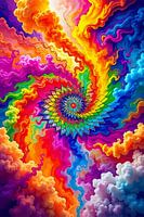 Een fascinerende symfonie van levendige kleuren ontvouwt zich in een indrukwekkend, kleurrijk beeld dat bijna surrealistisch aandoet. De compositie combineert dieppaars, stralend cyaan, helder geel en zacht groen tot een caleidoscopische werveling van tinten die harmonieus in elkaar overgaan. Deze explosie van kleur wordt afgewisseld…