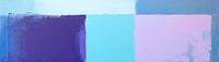 Kleurenbanden - Dit abstracte schilderij kenmerkt zich door brede horizontale stroken in levendige kleuren zoals dieppaars, kobaltblauw, turquoise, en zachtroze, elk met een textuur die aan een ruige borstelstreek doet denken.