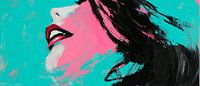Een stralend portret dat het samenspel van kleuren en emoties viert. De levendige combinatie van zachte pastelkleuren en gedurfd roze geeft de kamer een dynamische energie. Ideaal voor de woonkamer, waar het een gesprek kan stimuleren en een creatieve, artistieke sfeer kan creëren. Een echte blikvanger!