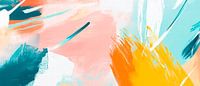 Een vuurwerk van zachte pasteltinten en levendig oranje ontvouwt zich in een dynamische dans van kleuren. De energieke penseelstreken geven elke kamer een frisse, inspirerende sfeer. Dit kunstwerk past perfect in een moderne woonkamer of een creatieve keuken en brengt levenslust in elke hoek.