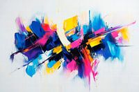 Levendige kleurspatten dansen harmonieus op het doek, terwijl krachtige penseelstreken een dynamische energie uitstralen. De explosieve combinaties van blauw, roze en geel trekken ieders aandacht en geven elke kamer een inspirerend tintje. Perfect voor een moderne woonkamer om creativiteit en levensvreugde aan te moedigen.