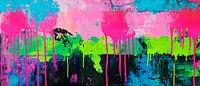 Er ontvouwt zich een levendig kleurenspel in felroze, heldergroen en diepblauw - een echte blikvanger! De dynamische druppels en sterke contrasten geven de ruimte energie en frisheid. Ideaal voor de woonkamer of een creatieve werkruimte waar inspiratie en levensvreugde welkom zijn.