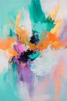 Een explosieve kleurendroom ontvouwt zich in levendige tinten aqua, oranje en paars die met elkaar dansen en een gevoel van dynamische energie creëren. Deze artistieke creatie voegt venstersferen toe aan elke kamer, ideaal voor een woonkamer waar het gesprekken kan stimuleren en de creatieve sfeer kan verlevendigen. Een echte blikvanger!