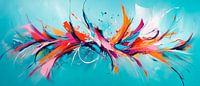 Een dynamisch lijnenspel ontvouwt zich in heldere tinten roze, oranje en blauw en straalt verve en levensvreugde uit. De gebogen vormen lijken te dansen en brengen een vrolijke energie in elke kamer. Dit kunstwerk is ideaal voor de woonkamer en verandert de ruimte in een bron van creatieve inspiratie en harmonieuze ontmoetingen.