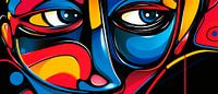 Fascinerende kleuren dansen rond een expressieve gezichtsvorm die recht in het hart kijkt. De combinatie van felblauw, helderrood en zachtgeel geeft dit kunstwerk een levendige energie die creatieve kracht geeft aan de woonkamer. Het nodigt uit tot denken en dromen - een perfecte aanvulling voor een inspirerende kamer.