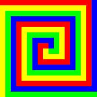 Spiraalvormige permutatie met rood, groen, blauw en geel.