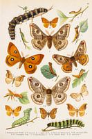 Oude prent met afbeeldingen van vlinders en hun rupsen uit de familie van eenstaarten. De Latijnse namen zijn vermeld. Wij zien o.a. berkeneenstaart, bruine eenstaart en gele eenstaart.