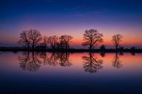 Vlak na zonsondergang kleurt de lucht boven de Elshoutse Wiel in intense rode en blauwe tinten. De bomen langs de waterkant worden scherp weerspiegeld in het spiegelgladde water, waardoor lucht en landschap in perfecte symmetrie samenkomen. Een moment van absolute rust waarin kleur, licht en reflectie elkaar versterken.