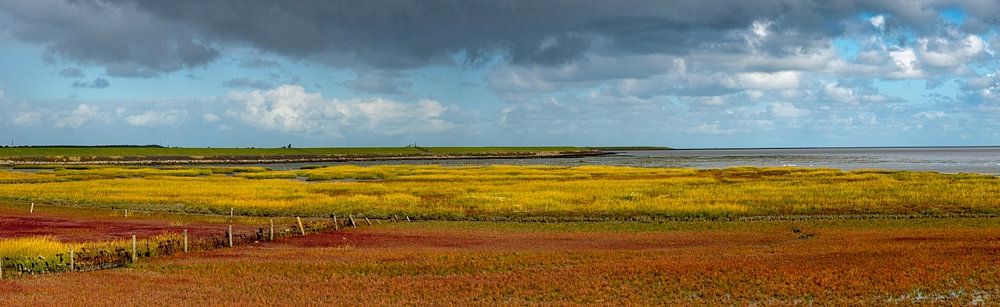 Prachtige kleuren en mooie wolken partij in een drooggevallen kwelder op het eiland Terschelling.