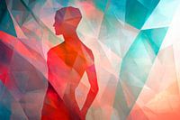 Een fascinerend samenspel van geometrische vormen en levendige kleuren ontvouwt zich hier, terwijl het silhouet van een persoon mysterieus op de achtergrond glinstert. Deze harmonieuze compositie straalt creativiteit en energie uit, perfect voor een moderne woonkamer of een geïnspireerd kantoor, waar het de ruimte vult met kleur en leven.