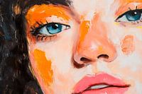 Een fascinerend portret dat de ziel weet te vangen met levendige kleuren en een expressieve blik. De harmonieuze combinatie van intense oranje tinten en zacht blauw brengt frisse energie in elke kamer. Ideaal voor een creatief huis of een inspirerend kantoor, waar het de verbeelding kan stimuleren en positieve vibes kan verspreiden.